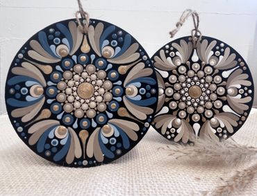 A relaxed atmosphere and time to paint, sessions are small and limited to 6 people only, so you’ll have lots of support to learn the techniques, get advice and ask questions. You can choose to follow and copy the exact pattern I have created for the workshop or use this as inspiration and create something completely unique to you. You’ll have the choice to either create a decoration with a neutral colour pattern or incorporating blues (see pictures).